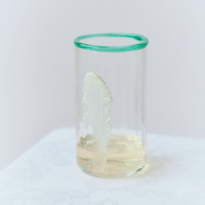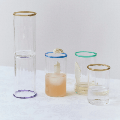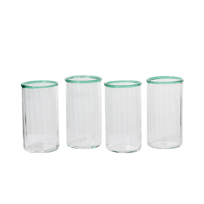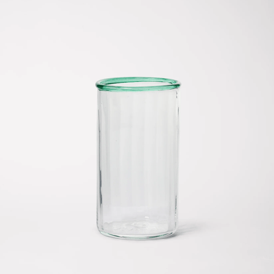A light and elegant glass with a ribbed effect that works wonders with candlelights on a table. A lovely frame for the simplest of servings, water.