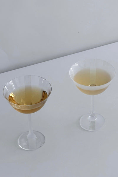 Scarpa glasses are made from lightweight crystal glass, specially sourced from the Czech Republic. They are shaped using a distinct sandblasting technique that gives them their unique surface texture.