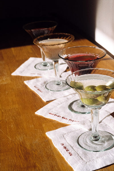 This set of vintage cocktail glasses has been hand-sourced by us for their character and timeless appeal. Each glass features subtle ripples, a soft green tint, and an organic shape that reflects its recycled glass origins.