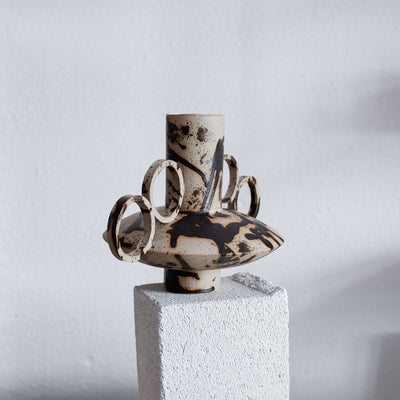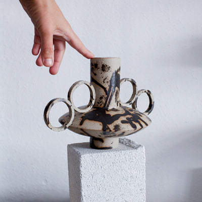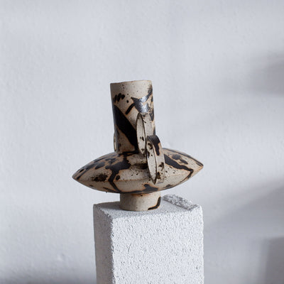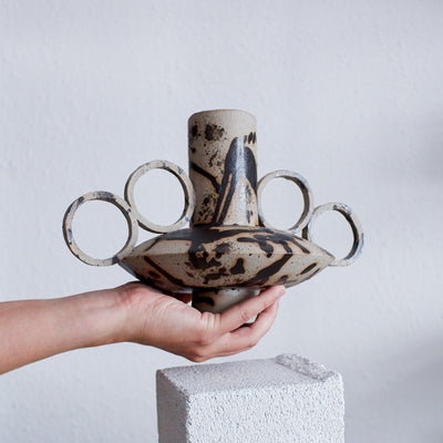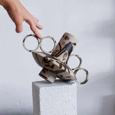 Unique: This means that by purchasing this Zebrino you will get exactly the one photographed A staging of how restrictions can enhance creativity. The artist creates vase-like sculptures that play with two separate shapes – a cylinder and a disc-orb – transforming them into various possibilities.