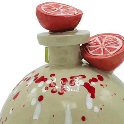 The Blood Orange Vase features orange segments on the lid and top of the vase amongst splashes of red and white underglaze. Keep yours on the mantle piece to add bold design to any room. Each piece is handmade, un-symmetrical, beautifully wobbly and always unique. Please note this product is made to order with a 4 week lead time.