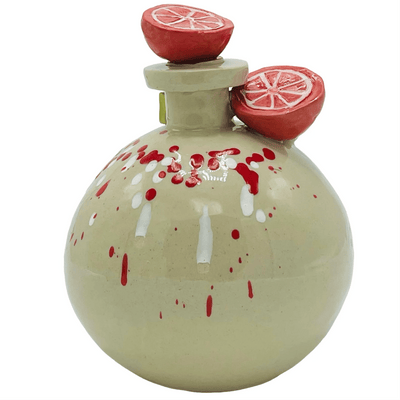 The Blood Orange Vase features orange segments on the lid and top of the vase amongst splashes of red and white underglaze. Keep yours on the mantle piece to add bold design to any room. Each piece is handmade, un-symmetrical, beautifully wobbly and always unique.