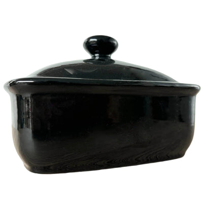 A hand-made black butter dish with a lid is an ideal tableware gift for a special person looking for a covered butter dish or butter keeper. Butter will stay soft and easily spreadable.