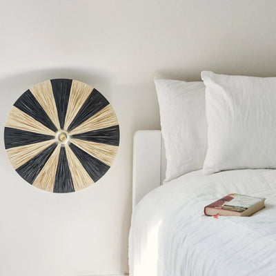 The Dott wall lamp is a decorative lamp in natural colours and materials. Due to the bulb's visibility, a bulb with a warm glow and low lumen is recommended, e.g. a carbon wire bulb. The wall lamp can be used as a decoration on the picture wall, in combination with several or other Dott wall lamps or above the bedside table in the bedroom, only the imagination sets the limits. Dott is made of raffia, also called bast in Danish, which originates from Africa, where the bast/raffia has been used for baskets etc.