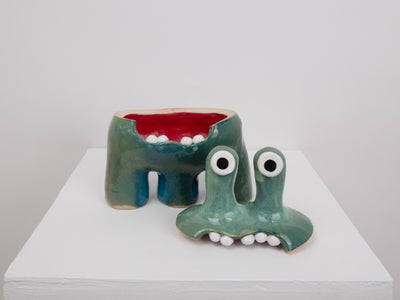 This monster is one of Hannah Simpson Studio's most classic forms. The 'Acer' monster doubles as a ceramic pot - perfect for storing all of your trinkets, sweets or any other goodies! The 'Lagoon' glaze brings a joyous feeling to any space.
