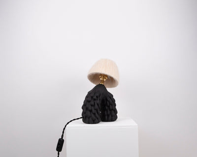 Handmade ceramic Black lamp base with a matte finish paired with an Off-White wool shade