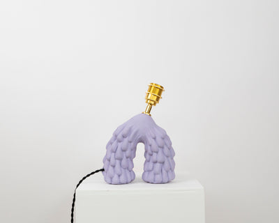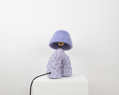 Handmade ceramic Wisteria Purple lamp base with a matte finish paired with a matching Light Lavender wool lampshade