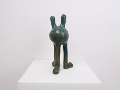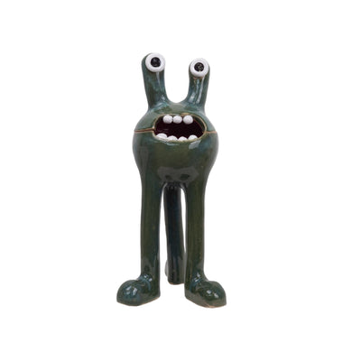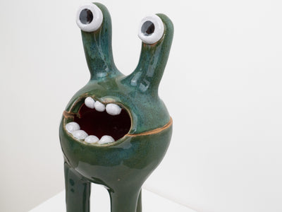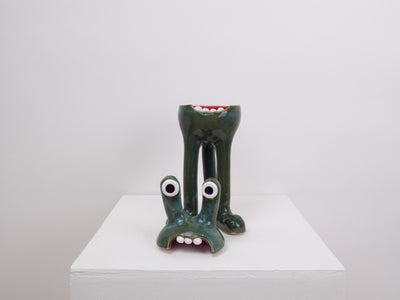 This 'Remy' monster is decorated with our 'Pine' gaze. This is a dark green colour with light blue specks floating within the glaze. The 'Remy' monster doubles as a ceramic pot - perfect for storing all of your trinkets, sweets or any other goodies! The colourful pattern brings a joyous feeling to any space.