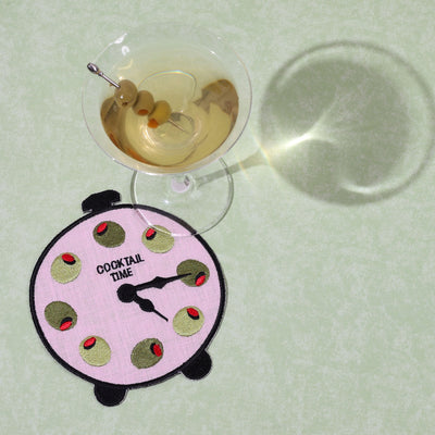 Set the clock for happy hour with these Cocktail Time linen napkins. Featuring a vintage-inspired clock face garnished with playful olives, these napkins are a nod to the timeless art of the cocktail. Crafted from crisp linen, they bring a touch of charm and a dash of whimsy to every pour — whether you’re hosting a soirée or savoring a quiet martini moment. Cheers to good timing and even better company!