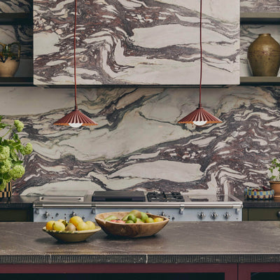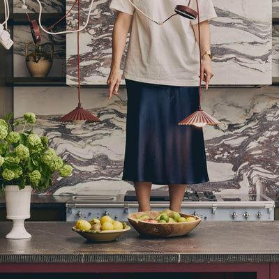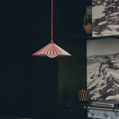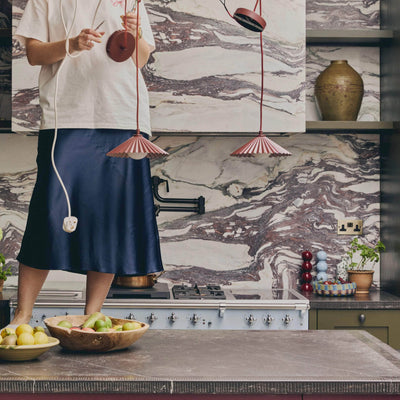 This pendant is part of the Pleat range, designed by acclaimed interior designer Emma Gurner in collaboration with houseof. Emma is known for her playful use of colour and her ability to infuse vintage inspiration with contemporary sensibilities. For this collection, she has drawn inspiration from her love of classic pleated designs, giving them a modern update with a fresh AW24 colour palette that combines deep burgundy with soft pastel tones. This collaboration with houseof reflects Emma’s passion for creating lighting that’s both timeless and trend-led, making the Pleat range a true reflection of her signature style.