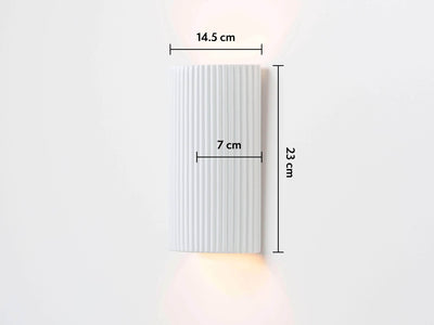 White ribbed ceramic pillar wall light