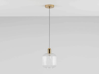 Switch up your interior with House Of's ribbed glass shade ceiling light, a standout modern form with a delicate finish. This fixture presents brass accents with a ribbed glass shade, which dapples the light around your room and provides an ambient glow. You can determine the fixture’s closeness to the ceiling using the long adjustable pendant wire to accommodate your respective space and desired aesthetic. For ultimate impact, style in multiples along a breakfast bar or down a hallway - so triple up! Dimensions: H: 130cm W: 18.5cm D: 18.5cm