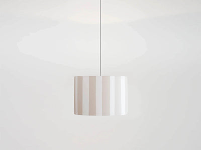 The classic stripe has had a houseof refresh; the thick stripes are slightly wobbly in shape, making the design feel cool and contemporary. The Stripe printed shade is perfect for updating existing light fittings without having to worry about hard wiring new pendant lights. Hand drawn by an independent print designer, digitally printed onto 100% cotton canvas and hand assembled all here in the UK, our new range of fabric shades supports local designers and industries. The Stripe printed shade comes in three colourways, and can used with ceiling pendants and table lamps. Does not come with electrical fitting. Compatible with E27 or E14 fittings.