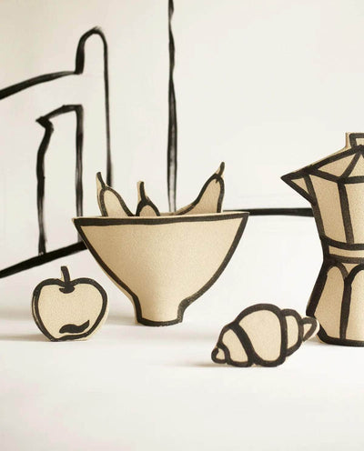 Discover Ini Ceramique's new collection inspired by Still Life, these classic paintings reinterpreted with a modern twist. Through a trompe l’oeil effect, each piece represents an everyday element, whether it be objects like a wine bottle, a coffee maker, food, or pets.