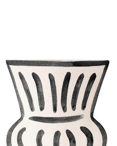 Crafted by their designer, the black underglazes are meticulously applied by hand before the initial firing, infusing the vase with a touch reminiscent of antiquity. After a second firing at 1250°C, a transparent glaze is added to the interior for a refined finish, ensuring lasting durability.