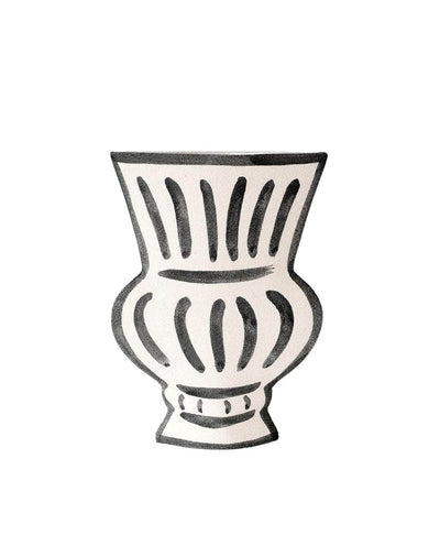 A part of a captivating new line blending ancient Greek pottery with contemporary design, the ‘Volute’ vase showcases delicate black underglaze illustrations that harmonize traditional and modern aesthetics. Crafted by their designer, the black underglazes are meticulously applied by hand before the initial firing, infusing the vase with a touch reminiscent of antiquity. After a second firing at 1250°C, a transparent glaze is added to the interior for a refined finish, ensuring lasting durability.
