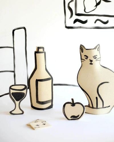 Discover Ini Ceramique's new collection inspired by Still Life, these classic paintings reinterpreted with a modern twist. Through a trompe l’oeil effect, each piece represents an everyday element, whether it be objects like a wine bottle, a coffee maker, food, or pets.