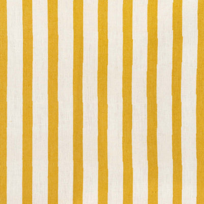 Lino stripe. Thin check stripe, created with overlaying rectangles. In homage to the colours and patterns of Northern Italy. White rectangles printed onto a yellow linen.