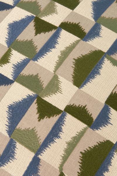Inspired by traditional ikkat techniques, this embroidered cushion features a totally unique pattern that feels vibrant and contemporary. Pair it with a subtle colour-block cushion for a modern mix-and-match look.