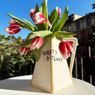 Presenting the sassy "Thirsty Bitches" Caraffa - a 24 x 21 cm handpainted ceramic masterpiece.