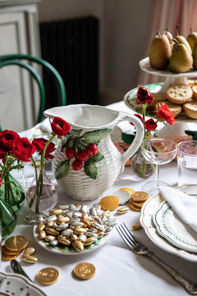 Jug / Ceramic / Hand painted with colourful cherry design / Moulded decorative details / No two jugs are exactly the same (Skye McAlpine Tavola think this is what makes them special) / Hand wash / Designed and handcrafted in Italy / Includes a recipe from Skye