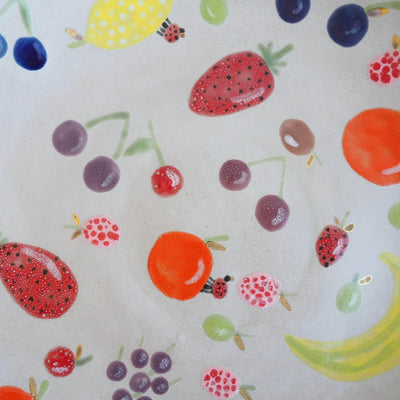 Handmade Large Ceramic Fruit Bowl with Illustrated Fruits