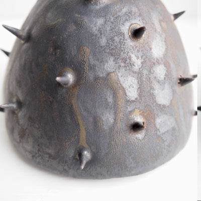 Unique one of a kind pot, each one is made by hand not in a mould or on the potters wheel so will vary slightly and have a slightly irregular form. All spikes made and added by hand.