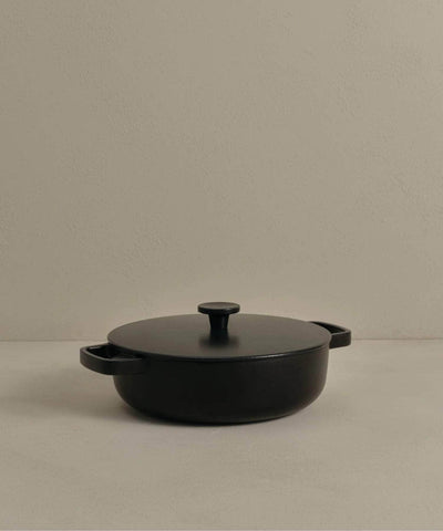 A beautifully proportioned pan perfect for casual, oven-to-table suppers with great friends and even better wine. It's made in France and double enamelled to ensure it lasts several lifetimes. Every cast iron order include a complementary bottle of seasoning oil.