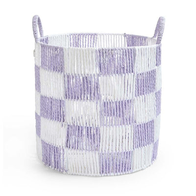 Add a touch of fun and practical storage to your little one’s room with these Checkerboard Baskets. The contemporary lilac check design brings a playful pop of colour to any space. Made with paper wrapped around a sturdy wire frame, these baskets are both beautiful and durable. In the nursery, this large basket is the perfect size to store bedding, blankets or nursing pillows. As they grow, use to organise toys, books, bedding, clothes or as a laundry basket.