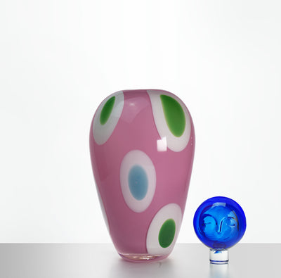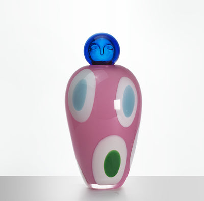 Part of the Evil Eye Series, it is inspired by the Turkish "Evil Eye," traditionally believed to ward off negative energy. Each piece features abstract eye motifs in various colorways, delicately formed in hand-shaped glass. The series also draws from the spirit of Japanese Kokeshi dolls—symbols of good fortune and well-being—blending two meaningful cultural icons into a subtle expression of protection and prosperity.
