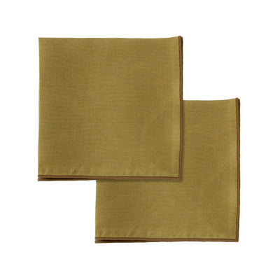 This pair of 100% linen napkins in elegant olive green, finished with dark green edges, adds a touch of refinement to the dining table.