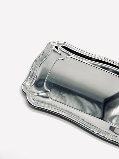 A vintage stainless steel serving dish, characteristic of the 70s. Made in France.