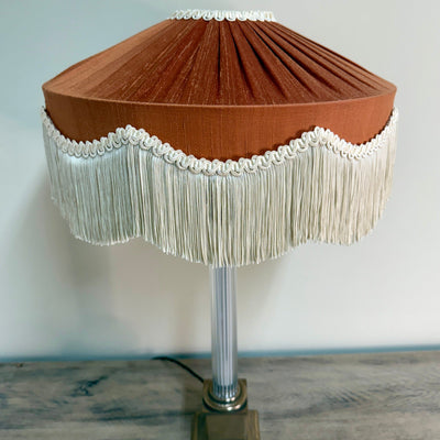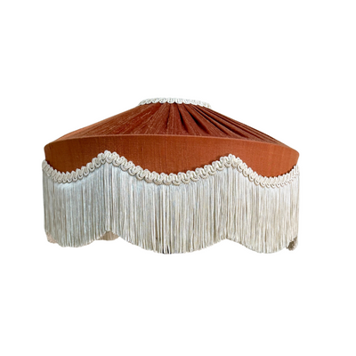 The Peggy silk shade adds a touch of vintage-inspired glamour to any interiors scheme. The silk is traditionally hand-stitched onto the frame and finished with our signature fringe - it's destined to be a future heirloom. Inspired by the Art Deco era, it's ideal for placing in an entrance, living room or bedroom.
