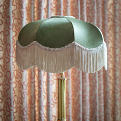 A soft jewel-tone lampshade in the fresh, on-trend hue of pistachio green. This shade brings soothing sophistication to any space. We'd pair it with warm brass, cream linens and rich walnut woods.