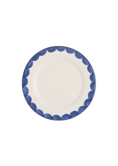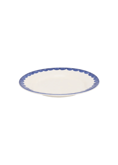 Set of 2 hand-painted blue scallop side plates. With designs inspired by the 'fajalauza' ceramic tradition of southern Spain, Late Afternoon's dinnerware sets speak of sunshine, long lunches and 'sobremesa': the Spanish word for the conversation over the table after a meal with family and friends. Made in Portugal by artisans, in the long tradition of Iberian ceramics.