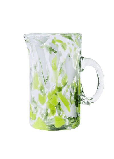 Hand-blown green and white speckled terrazzo jug, mouth-blown by glass artists in the Balearic Islands.