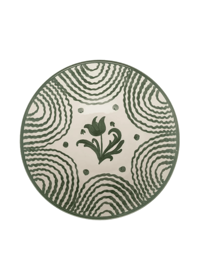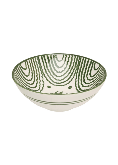 Hand-painted large green serving bowl, with a design inspired by antique, collectable 'lebrillo' bowls.