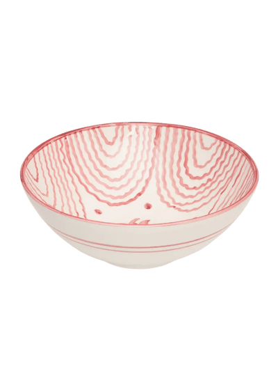 Hand-painted large pink serving bowl, with a design inspired by antique, collectable 'lebrillo' bowls.