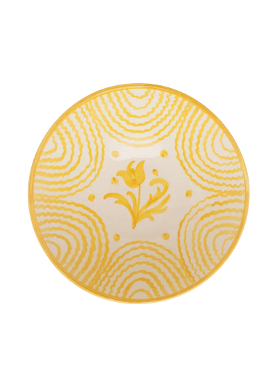 Hand-painted large yellow serving bowl, with a design inspired by antique, collectable 'lebrillo' bowls.