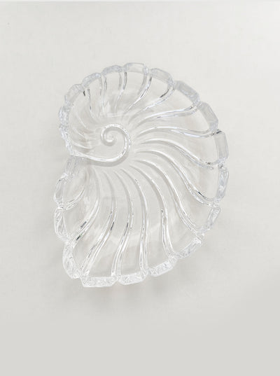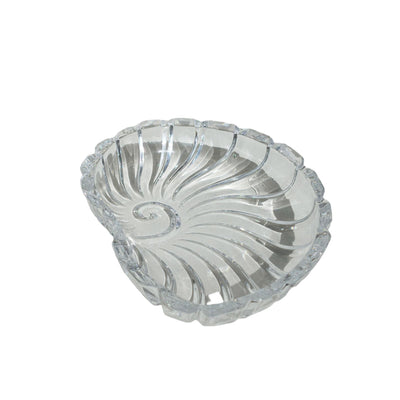 This crystal catchall in the shape of a swirling shell is both a decorative and functional luminous piece for small treasures. Its faceted lines and clear finish play beautifully with light, casting delicate reflections.