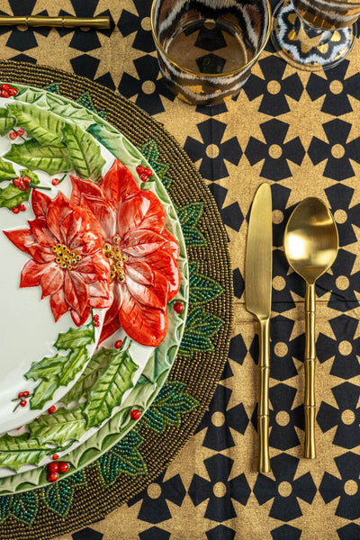 Elevate your dining experience with this 5-piece gold bamboo-style cutlery set. Combining elegance with a touch of natural inspiration, this set brings sophistication to any table setting. Perfect for both special occasions and everyday use, each piece is crafted with a beautiful bamboo-inspired design in a luxurious gold finish, adding timeless style to your table.