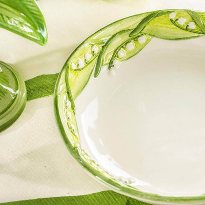 Elevate your table setting with our Lily of the Valley hand-painted ceramic plates, exquisitely crafted in Italy. Featuring a delicate lily of the valley flower border, these plates bring a fresh, elegant touch to your spring and summer table decor. Perfect for special gatherings or everyday dining, they add a timeless charm to any occasion.