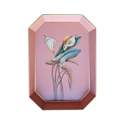 Featuring a delicate lily in full bloom against a radiant pink blush background, this tray is a striking blend of colour and floral charm. Hand-painted by skilled artisans, each piece is unique, showcasing intricate brushwork and vibrant hues that elevate any space.