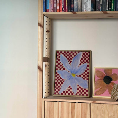 Soft Blue Bloom on Wood Checkerboard - Original Painting
