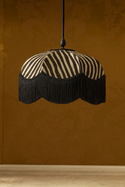 Add high drama and a little colour-pop to your space with this striking zebra-print lampshade. The attention-grabbing pattern is printed onto the most luxurious velvet, which keeps the overall impact refined and sophisticated.