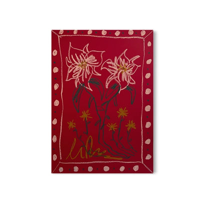 Pink Floral on Red Background | Original Painting A3