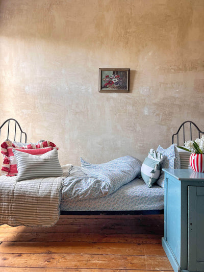 This sweet cushion has been carefully handmade in Cornwall from beautifully coloured, laundered linen. ‘Wimbledon’ features a gorgeous stripe in soft white and sage green perfect for summer.
