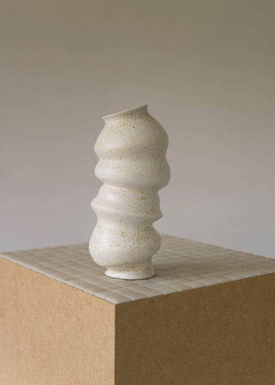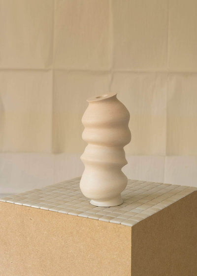 This is a piece that evokes emotions and plays with plasticity, the sinuous shapes and changing points of view tell us something new each time. It has several functionalities as it can be used as a candle holder, a floral vase or simply as a sculpture.