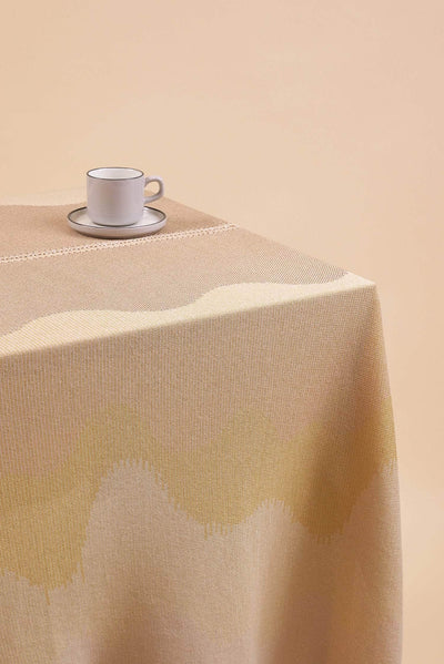 With its charming multicolour organic graphic, this tablecloth is a stylish and modern statement for your dining table. The unique inlay yarn technique in the central part gives this piece a woven-like optic. The tablecloth is composed from 2 pieces that are stitched by hand as part of a social project in collaboration with the NGO HOPS in North Macedonia.