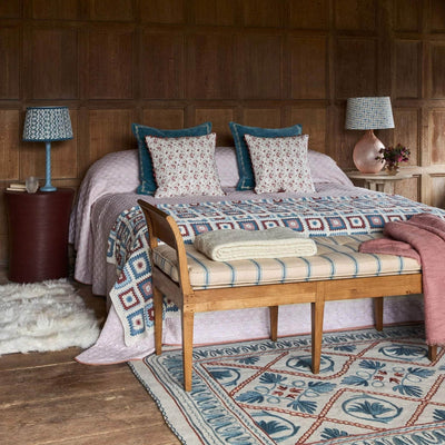 Available in one convenient size, the statement rug is ideal for styling at the end of a bed, in front of a fireplace or can be layered with a larger rug for a truly luxurious scheme. Traditional chain stitch embroidery, thought to have originated in the 11th century in Kashmir, adds a decorative finish to this individual rug.